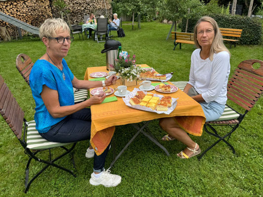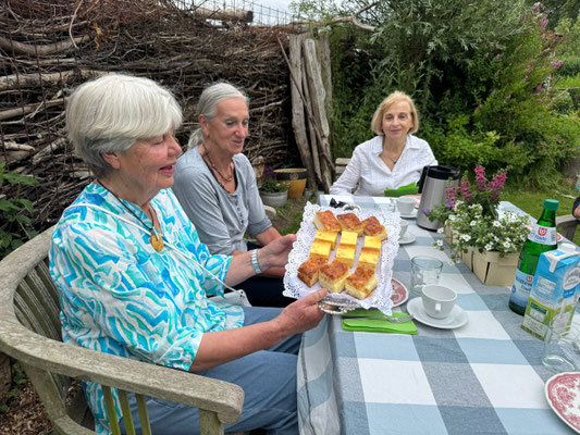 Unsere Eindrücke konnten wir dann an liebevoll gedeckten Gartentischen vertiefen und zugleich sowohl dieses Kleinod als auch Kaffee und köstlichen Kuchen genießen.