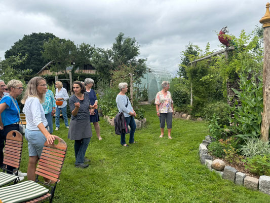 Unsere LandFrau Sonja Lorenzen-Schneider, kurz Sonni, hatte uns eingeladen, ihren großen Garten zu besichtigen. Dem waren wir gerne gefolgt, denn ihr Garten ist kein "gewöhnlicher", sondern ein auf ganz besondere Weise gestalteter Garten, mit ungewöhnlichen Ideen und Kreationen.