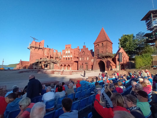 Per Panoramafahrt lernten wir am zweiten Tag die Insel näher kennen und erkundeten Kap Arkona mit den beiden prägnanten Leuchttürmen. Ein kurzer Fußweg brachte uns von dort hinunter ins kleine Fischerdorf Vitt. Am Abend besuchten wir die Störtebeker Festspiele mit dem diesjährigen Theaterstück "Freibeuter der Meere"- Feuerwerk zum Abschluss eingeschlossen!